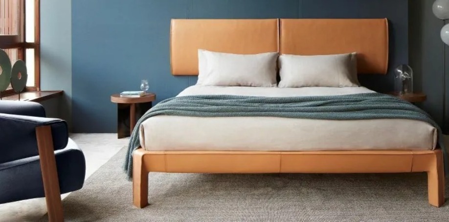 結構和床腳覆蓋著溫暖且高檔的皮革,每部分之間的接縫處都可見馬鞍形縫線。