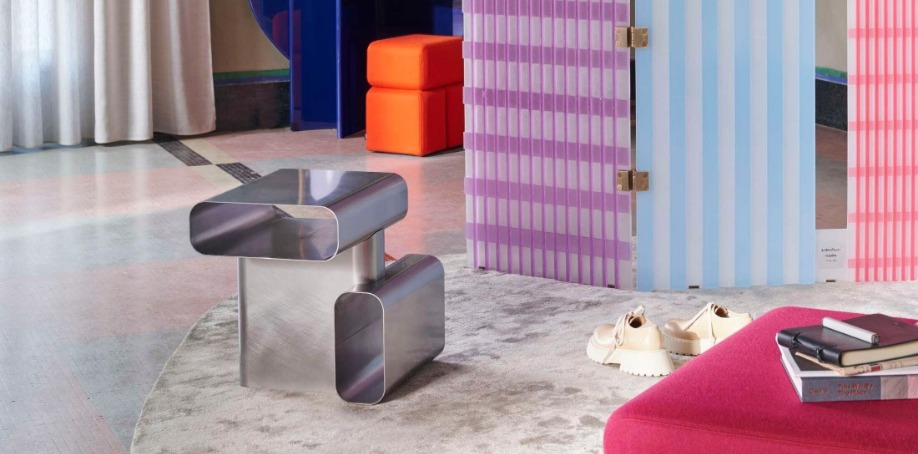 形狀結構與Softcorner椅凳的弧形設計相呼應, 將冷暖材料巧妙配置並與軟墊相互融合