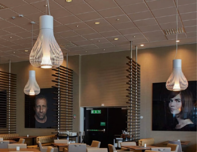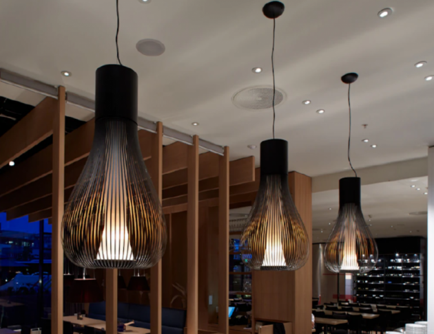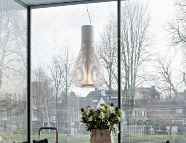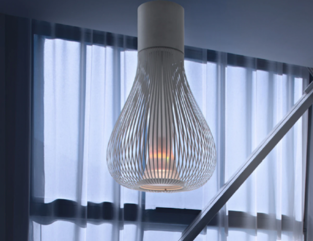 Chasen吊燈的燈罩由許多小的經過光蝕刻的不鏽鋼葉片製成,這要歸功於它的刻度盤,該燈的幾何形狀通過改變板條之間的開口來調節發射的光量。